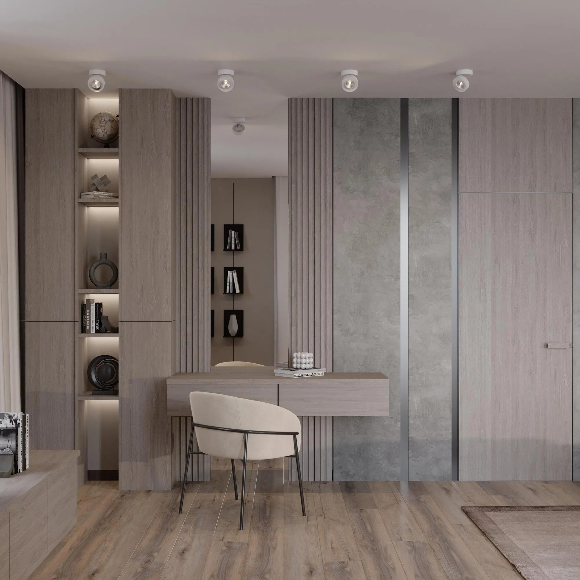 Встраиваемый поворотный откидной светильник для потолка, 12Вт. Цвет БЕЛЫЙ 5000K, св.поток 800лм, CRI(Ra)>90, угол 24°. Угол поворота 355°, угол наклона 90°. Корпус круглый, белый алюминий, IP40. Размер DxH Ø100x45мм. Установка в отверстие 70мм. Питание AC 220-240V, 12Вт, драйвер в комплекте (DC 300mA, 25-42V).