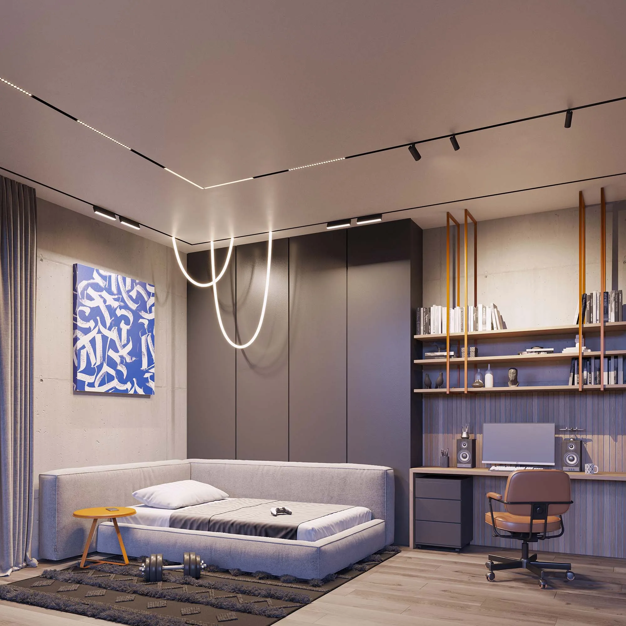Светильник гибкий для магнитных треков серии ORIENT. Мощность 35 Вт, св. поток 2275 лм, 65 лм/Вт, дневной 4000 K, CRI>90, угол 360°, напряжение питания 48 В. Матовый белый фигурный корпус из силикона с черными креплениями. Размер: диаметр 25 мм, длина 2500 мм. Монтаж на магнитный трек ORIENT. Адаптеры в комплекте.