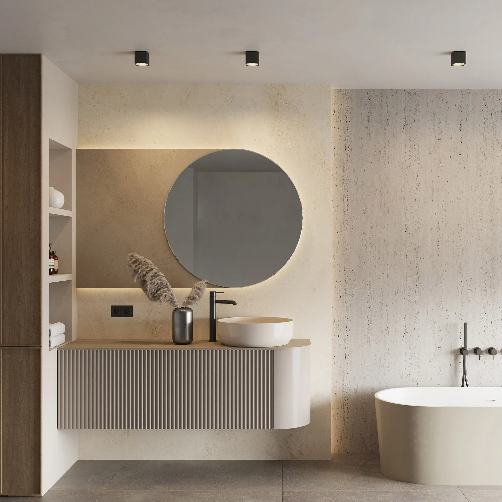 Накладной интерьерный светильник. Мощность 10 Вт, св. поток 780 лм, 78 лм/Вт, дневной 4000 K, CRI>90, угол 24°, напряжение питания 230 В. Черный квадратный корпус из алюминия, степень защиты IP54. Размер: длина 78 мм, ширина 78 мм, высота 65 мм. Монтаж накладной. Драйвер встроенный, пульсация <5%.