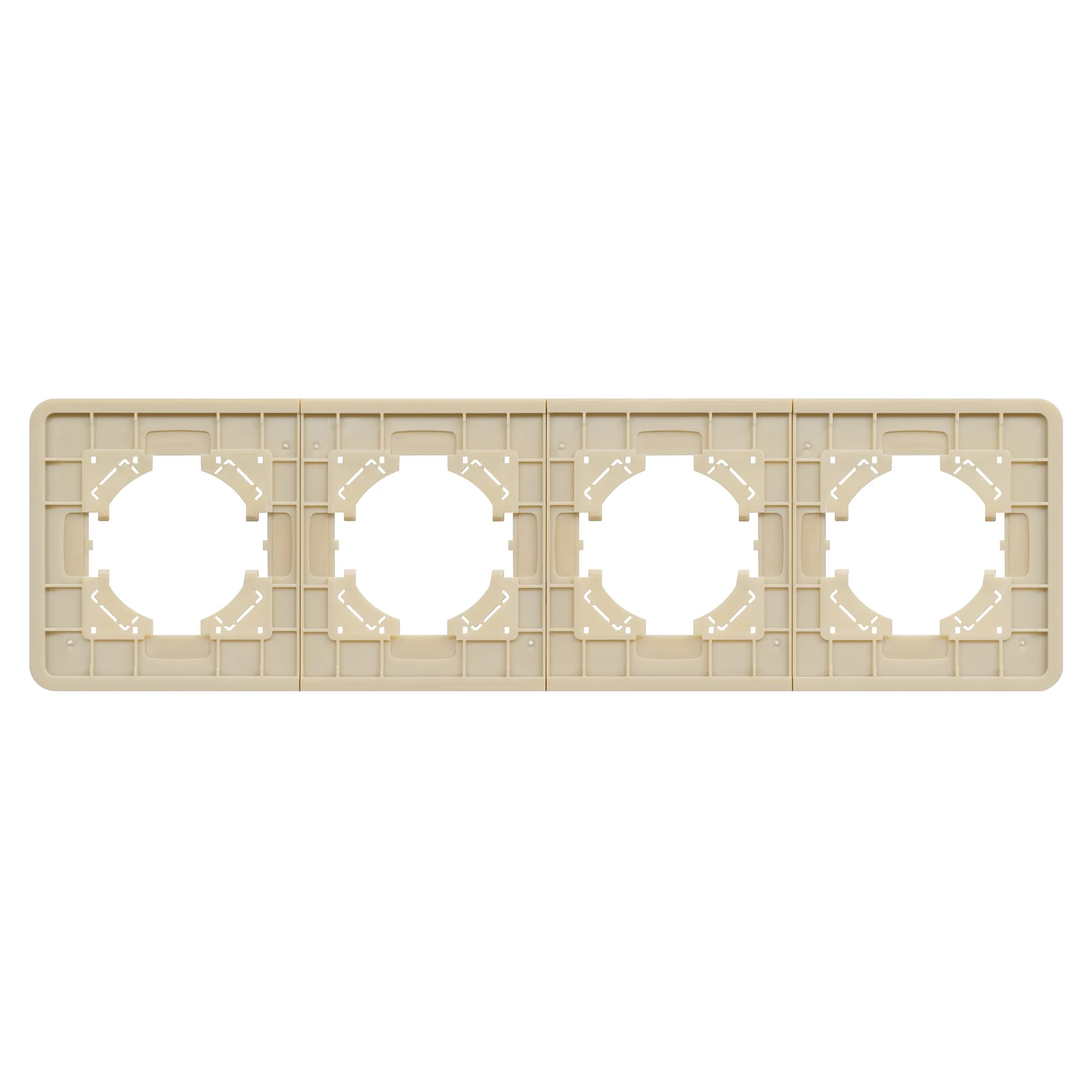 Рамка алюминиевая на 4 поста, под встраиваемый механизм. Цвет - золотой. Уровень герметичности IP20. Ориентация монтажа - горизонтальная (основным ориентиром служат посадочные выступы для накладки механизма).