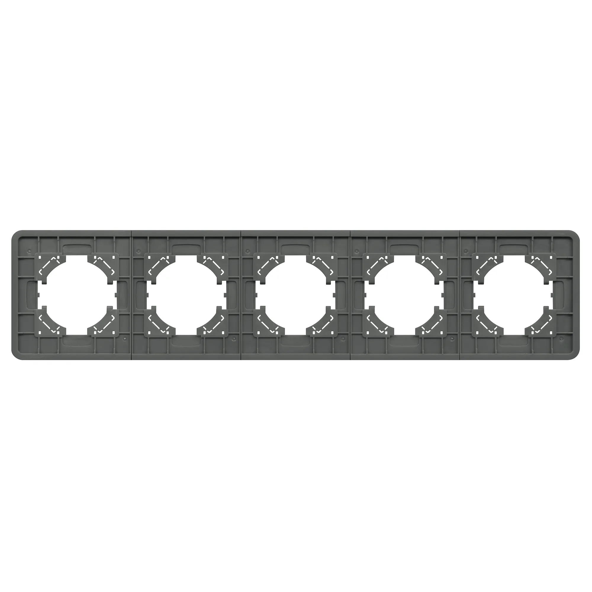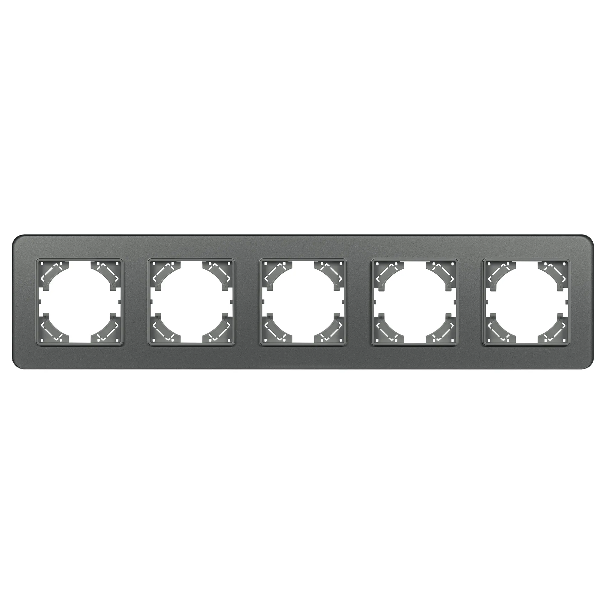 Рамка стеклянная на 5 постов, под встраиваемый механизм. Цвет - серый. Уровень герметичности IP20. Ориентация монтажа - горизонтальная (основным ориентиром служат посадочные выступы для накладки механизма).