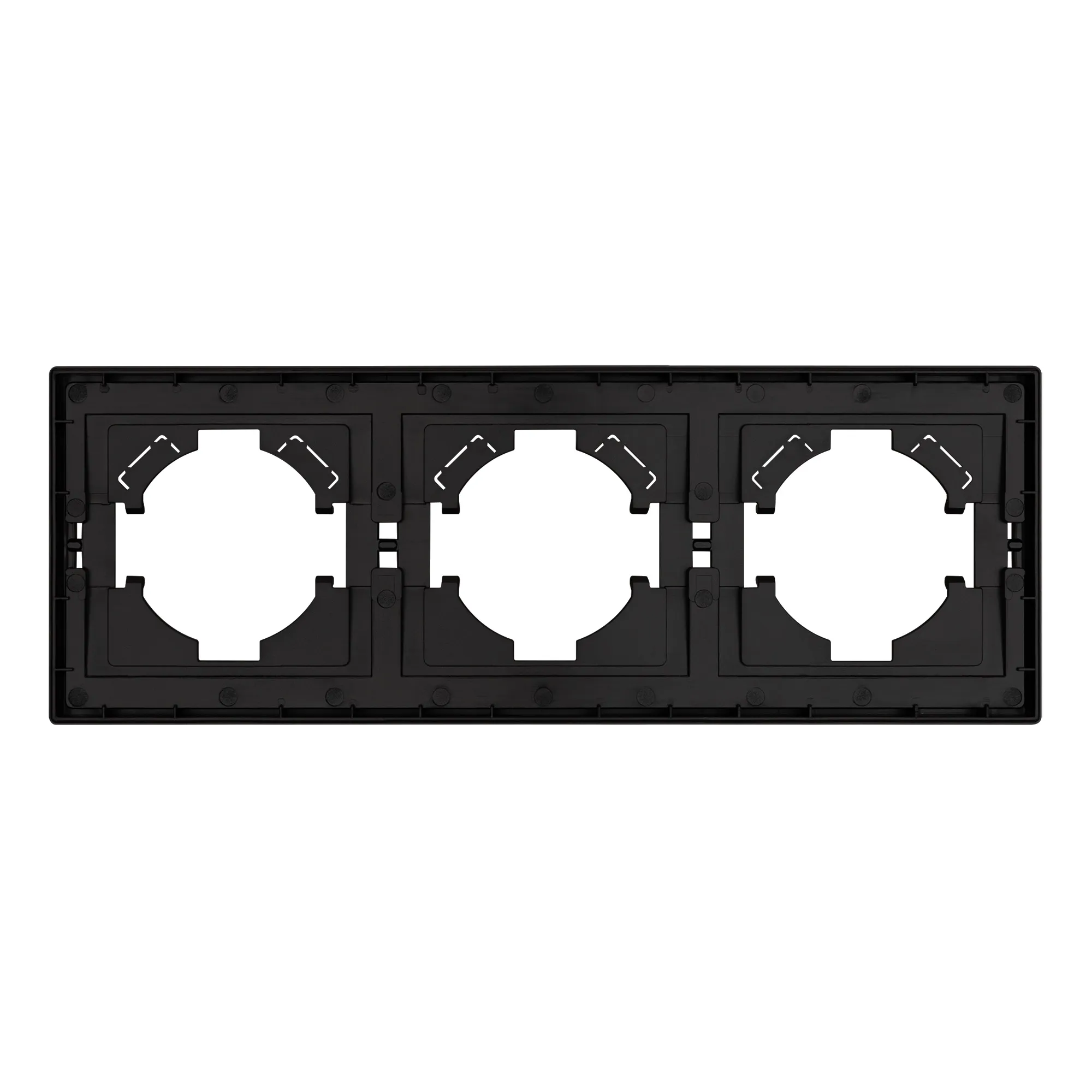 Рамка пластиковая на 3 поста, под встраиваемый механизм. Цвет - черный. Уровень герметичности IP20. Ориентация монтажа горизонтальная. Габаритные размеры: длина 221 мм, ширина 80 мм, высота 9 мм. Гарантийный срок 12 мес.