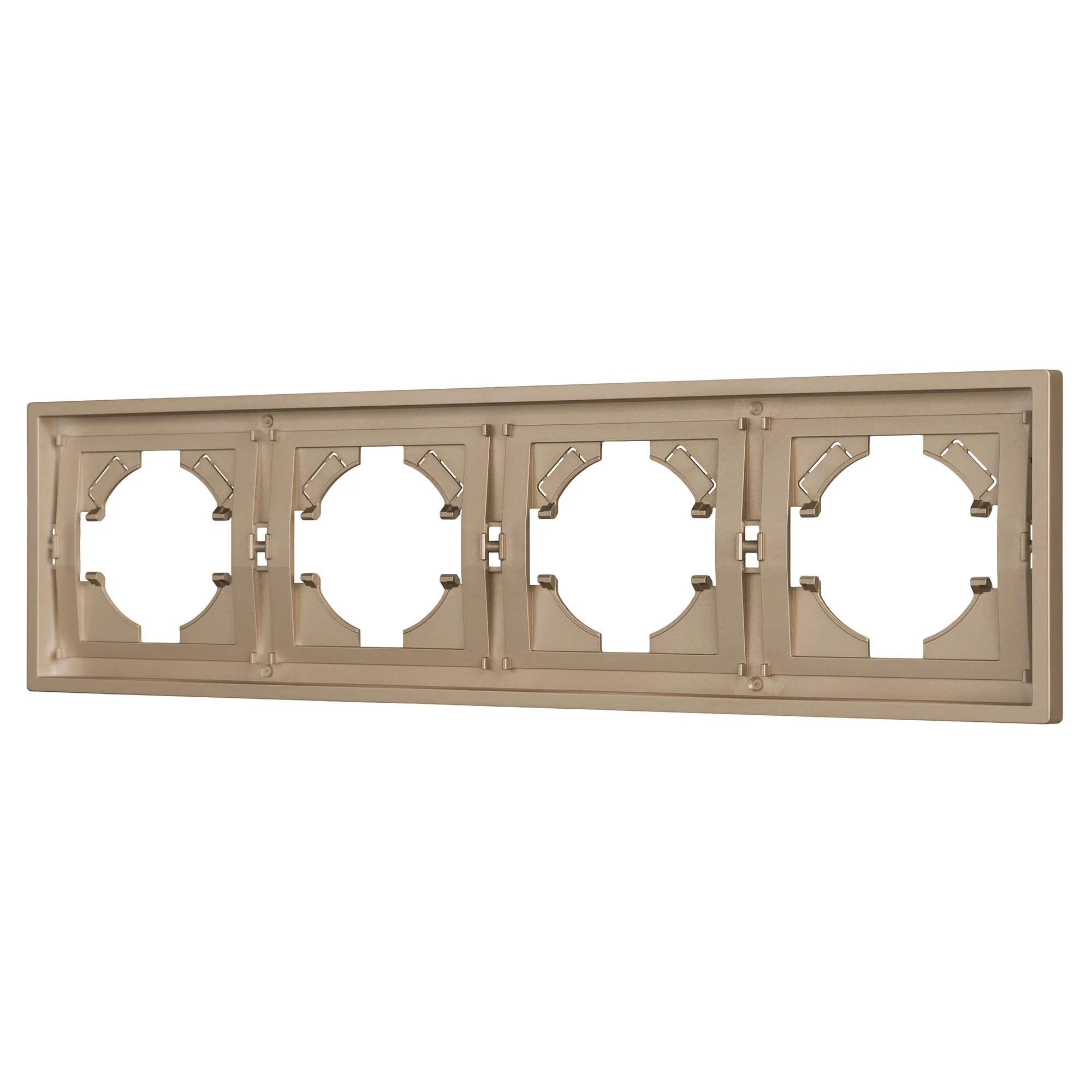 Рамка пластиковая на 4 поста, под встраиваемый механизм. Цвет - песочный. Уровень герметичности IP20. Ориентация монтажа горизонтальная.