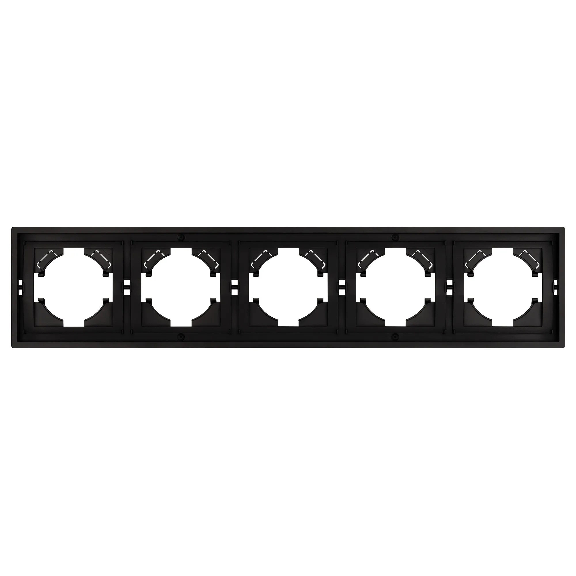 Рамка пластиковая на 5 постов, под встраиваемый механизм. Цвет - черный. Уровень герметичности IP20. Ориентация монтажа горизонтальная.